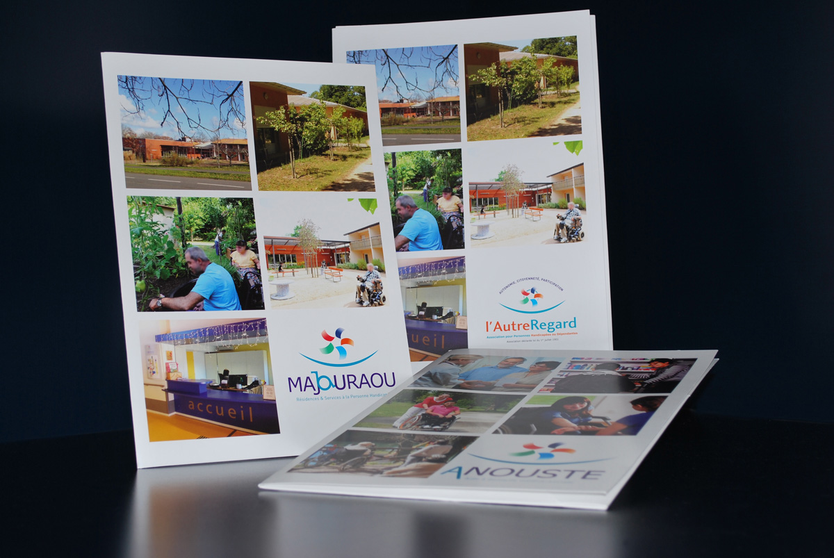 Création de plusieurs brochures, invitations et logos pour la résidence Majouraou ainsi que ses associations notamment l’Autre Regard et l’Abri Côtier.